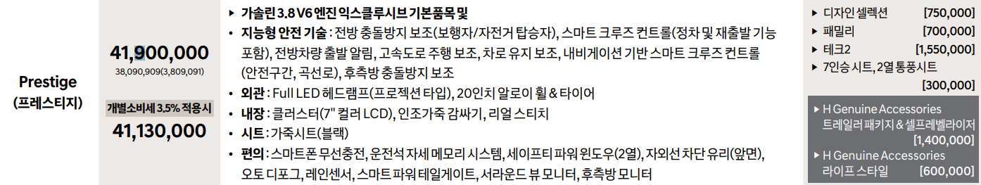 현대자동차 팰리세이드 프레스티지 등급 옵션 비교 정리